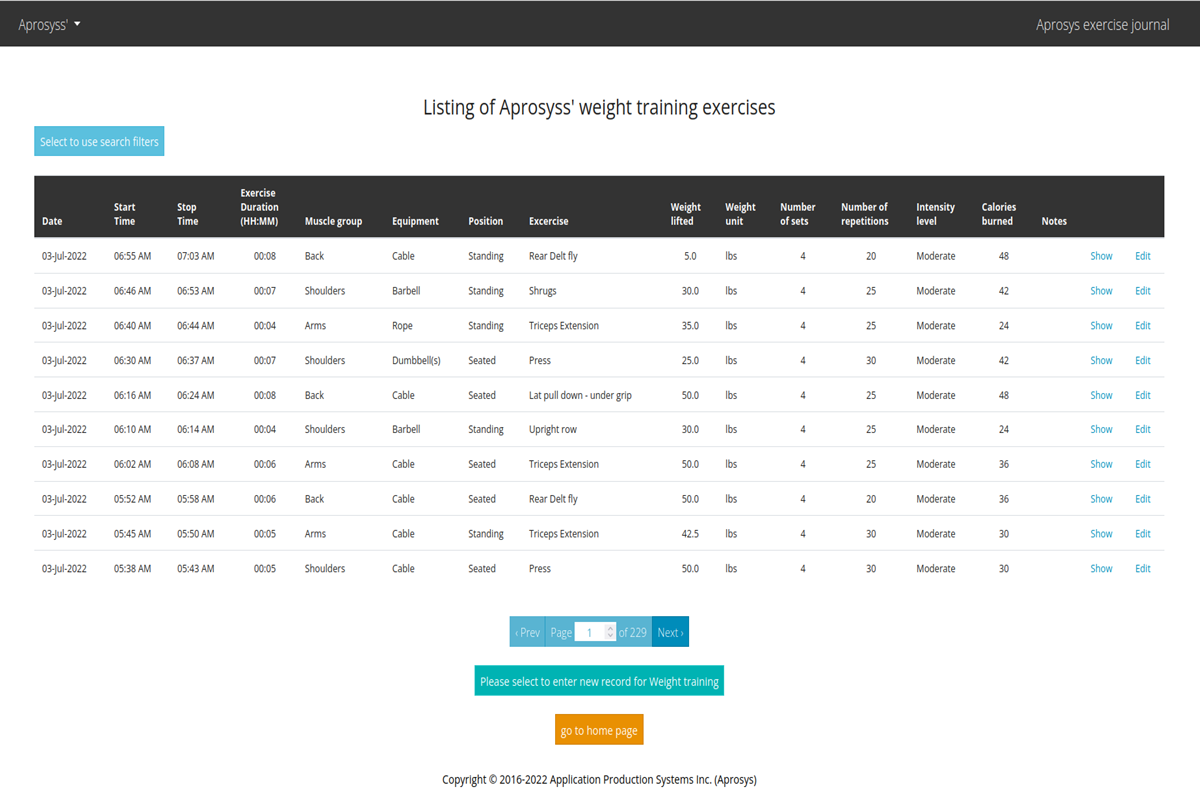 Build a subscription based exercise journal utilizing several different software languages and frameworks. The screenshots are taken from our exercise journal website.
