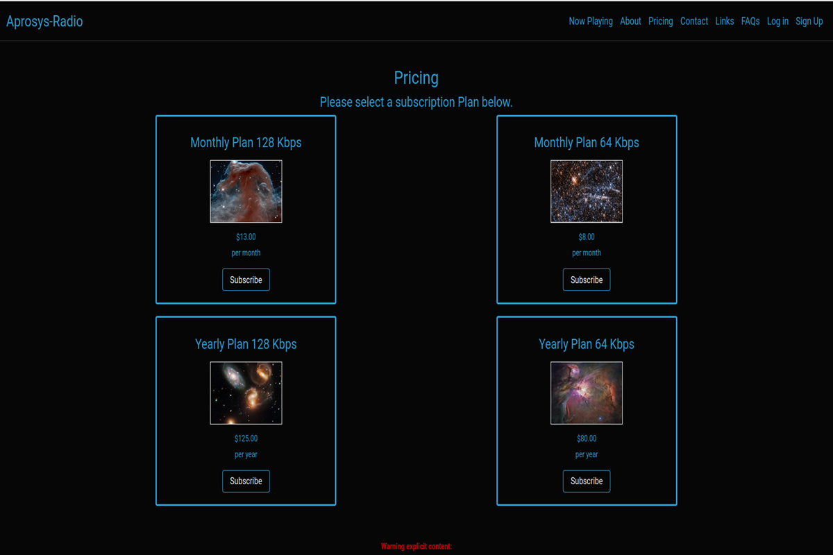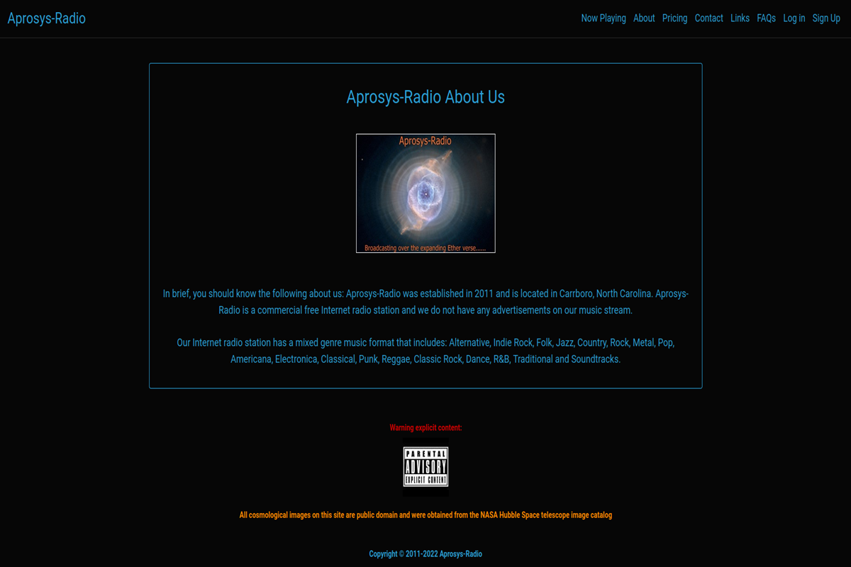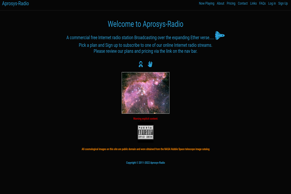 Build a subscription based commercial free internet radio station utilizing several different software languages, operating systems and frameworks. The screenshots are taken from our internet radio station website.